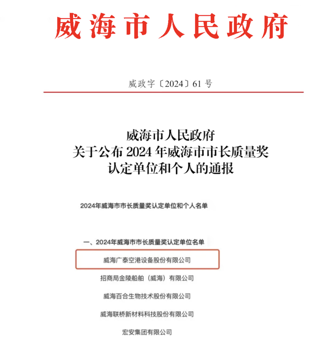 近期,由威海市質(zhì)量強(qiáng)市及品牌戰(zhàn)略推進(jìn)工作領(lǐng)導(dǎo)小組辦公室印發(fā)通知,組織開展了2024年度威海市市長(zhǎng)質(zhì)量獎(jiǎng)?wù)J定工作。經(jīng)過(guò)激烈的角逐,威海廣泰空港設(shè)備股份有限公司(以下簡(jiǎn)稱“威海廣泰”)在眾多競(jìng)爭(zhēng)者中脫穎而出,成功榮獲2024年度威海市市長(zhǎng)質(zhì)量獎(jiǎng)。此項(xiàng)殊榮不僅是對(duì)威海廣泰產(chǎn)品…