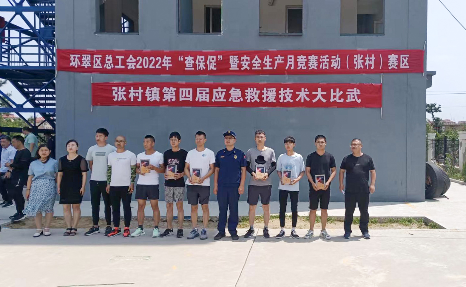 6月22日,環(huán)翠區(qū)應急救援技術(shù)大比武在張村鎮(zhèn)消防中隊訓練場舉行。此次活動由區(qū)總工會主辦,張村鎮(zhèn)總工會承辦,張村鎮(zhèn)安監(jiān)辦協(xié)辦。致力于提升職工安全意識,普及安全生產(chǎn)應急救援知識,提高應急處置能力。張村鎮(zhèn)31家企業(yè)共93名職工參加。比賽包括三人快速著裝水帶連接和百米負重滅火…