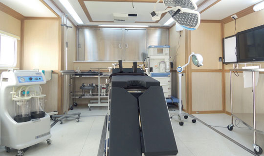 廣泰手術(shù)車(chē)通過(guò)層流凈化裝置達(dá)到艙內(nèi)環(huán)境萬(wàn)級(jí)凈化標(biāo)準(zhǔn),整車(chē)集成供氧、制氧系統(tǒng),安裝手術(shù)床、無(wú)影燈及其他手術(shù)專(zhuān)用儀器設(shè)備,在應(yīng)急情況下實(shí)施手術(shù)救援。