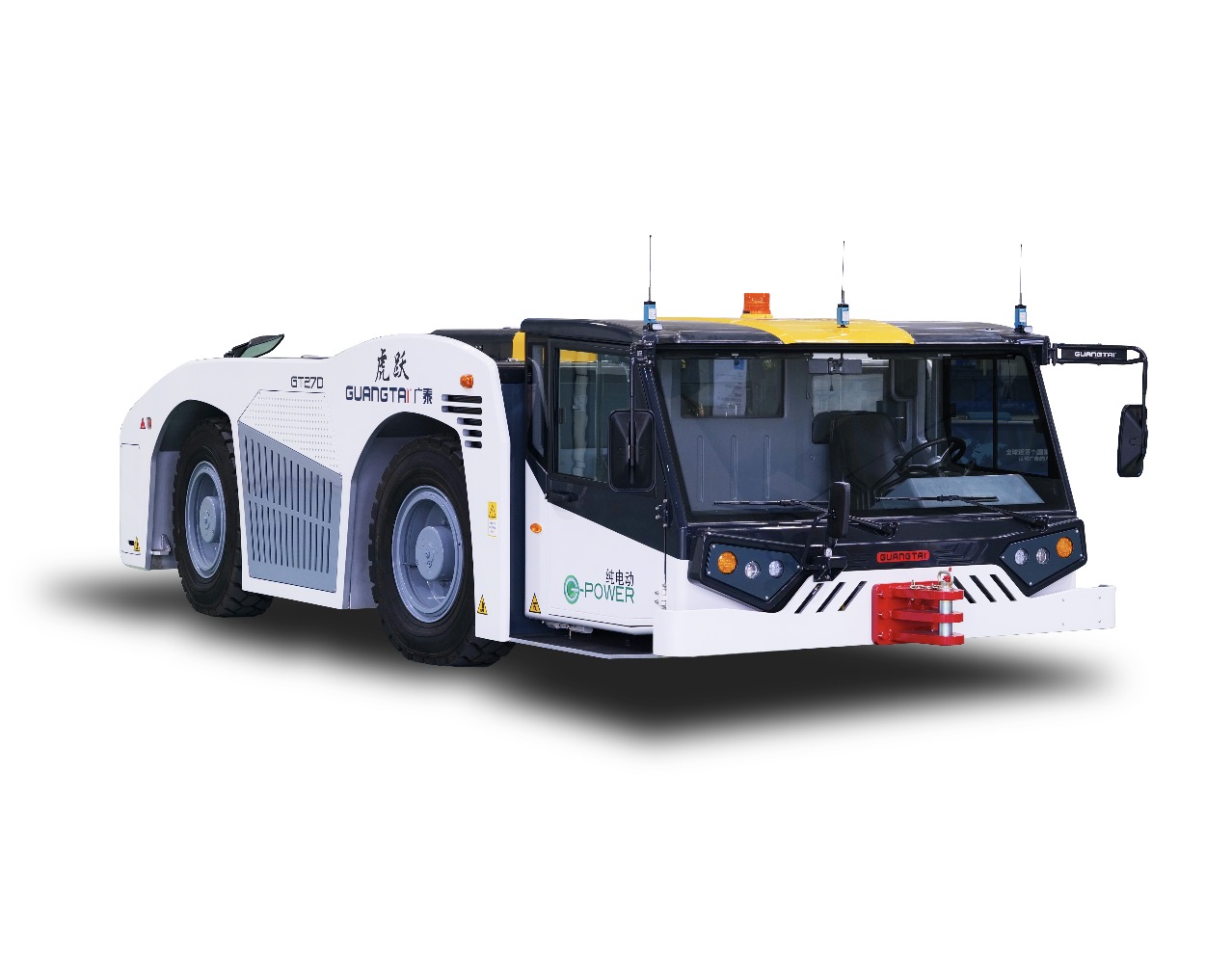 該類設(shè)備以純電能為動(dòng)力,是牽引和頂推飛機(jī)離開機(jī)場停機(jī)廊橋的地面保障設(shè)備,同時(shí)還可因飛機(jī)故障及維護(hù)需要,用于救援、牽引和移動(dòng)飛機(jī)至維修機(jī)庫。該設(shè)備主要由底盤、電動(dòng)機(jī)、電池、變速箱、傳動(dòng)軸、前后橋、輪胎總成、制動(dòng)系統(tǒng)、轉(zhuǎn)向系統(tǒng)、駕駛室、控制系統(tǒng)等組成。